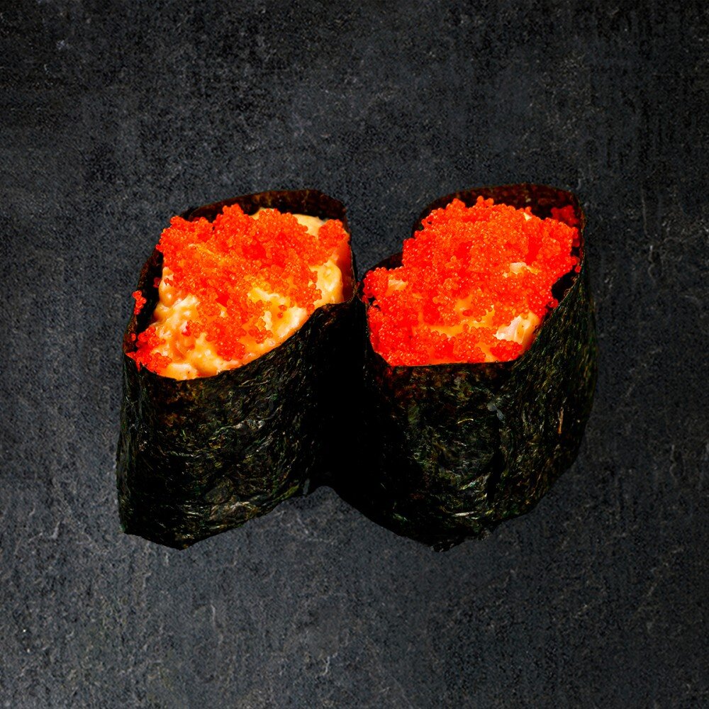 Рис, креветка, нори, соус нежный чили, сыр моцарелла, икра масаго.
