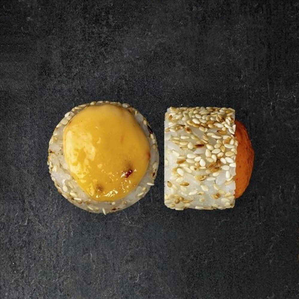 Рис, снежный краб, нори, крем-сыр, огурец, кунжут, соус нежный чили (8 шт).