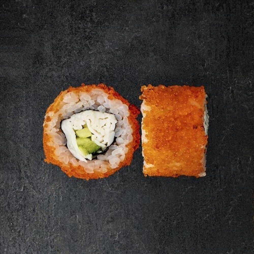 Рис, снежный краб, огурец, икра масаго, нори, соус нежный чили (8шт).