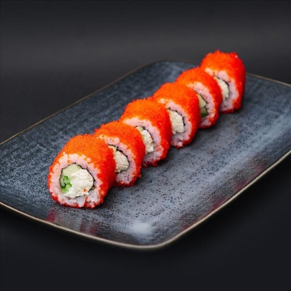 Рис, нори, краб, огурец, авокадо, икра масаго