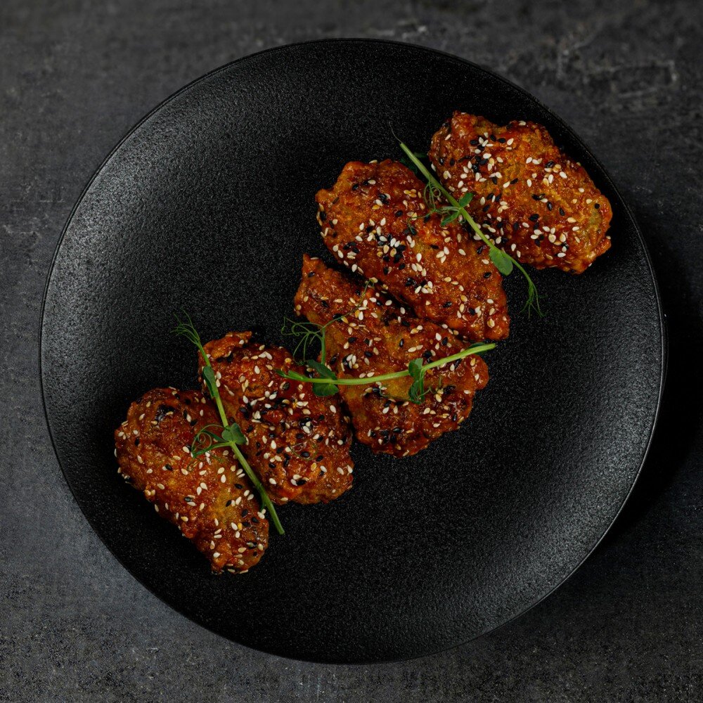 Куриные крылья, паприка, соевый соус, кляр, сухари панировочный, соус тайский, кунжут. (5 шт.)
