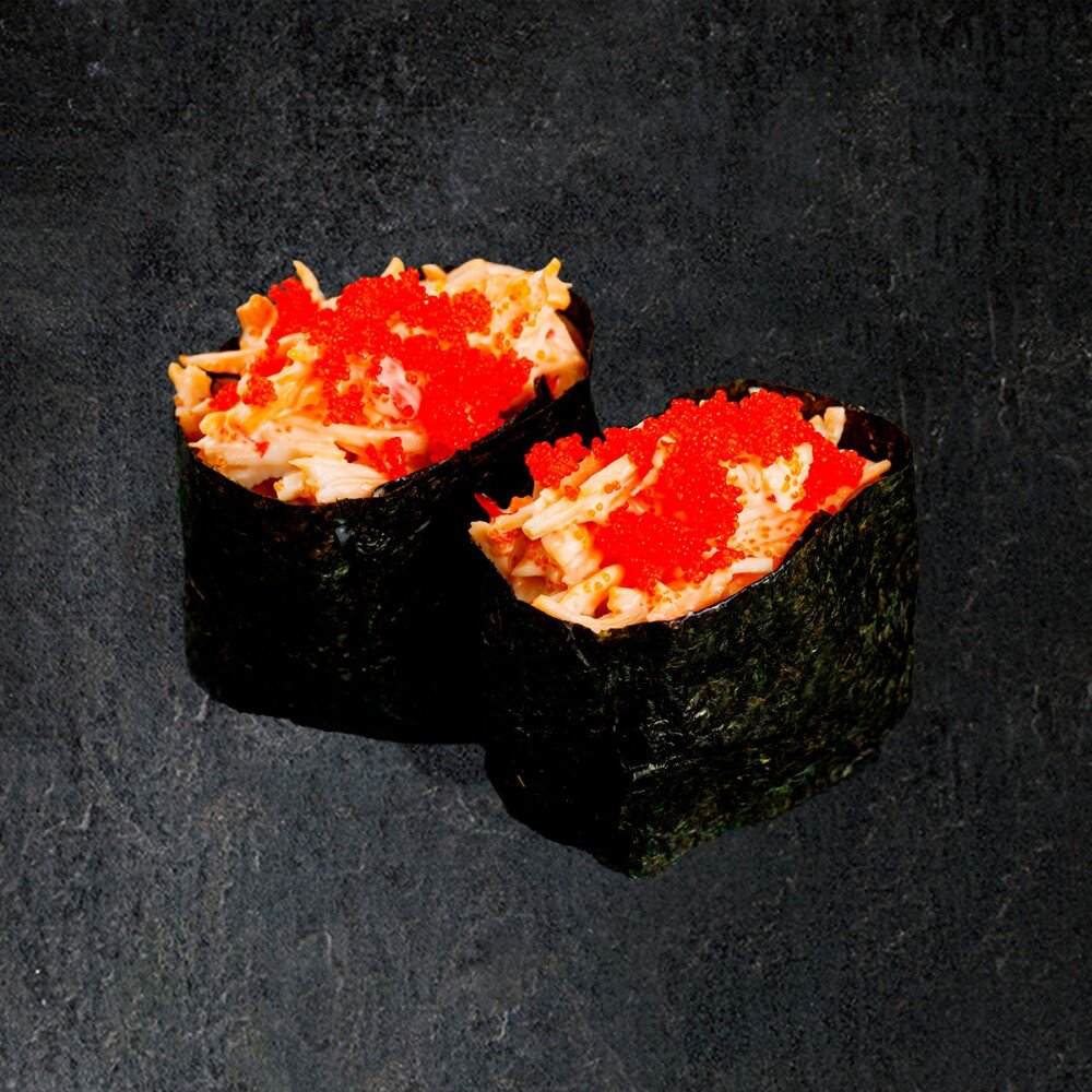Рис, снежный краб, нори, икра масаго, соус нежный чили.